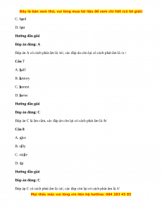 Đáp án C có cách phát âm là /ð/, các đáp án còn lại có cách phát âm là /θ/ Câu 6 A. date B. father