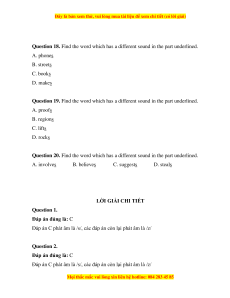 Question 6. Find the word which has a different sound in the part underlined. A. brings B. trains C. talks D. clears