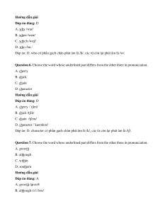 Question 5. Choose the word whose underlined part differs from the other three in pronunciation. A. why B. when C. which D. who Hướng dẫn giải