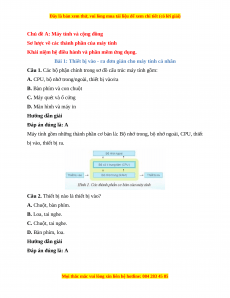 Câu 1. Các bộ phận chính trong sơ đồ cấu trúc máy tính gồm: