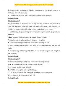 Câu 8. Khẳng định nào sau đây là đúng khi nói về máy tính xách tay?