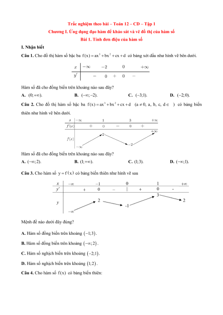 Bài 1. Tính đơn điệu của hàm số I. Nhận biết