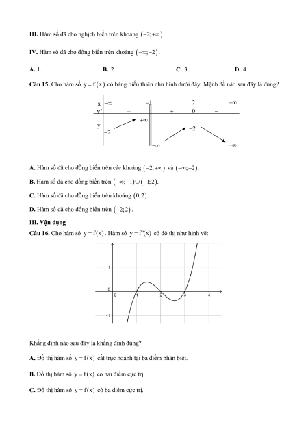 D. Hàm số đã cho đồng biến trên 2;2 . III. Vận dụng
