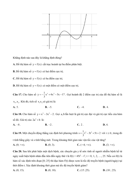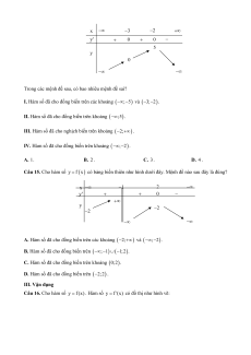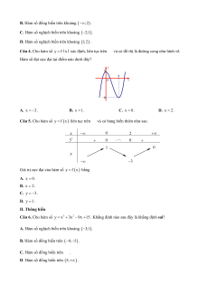 y x 3x 1 nghịch biến khi x thuộc khoảng nào sau đây? A. (0;2). B. (0;). C. ( ; 2). D. ( ; 0) và (2;). Câu 9. Cho hàm số 2