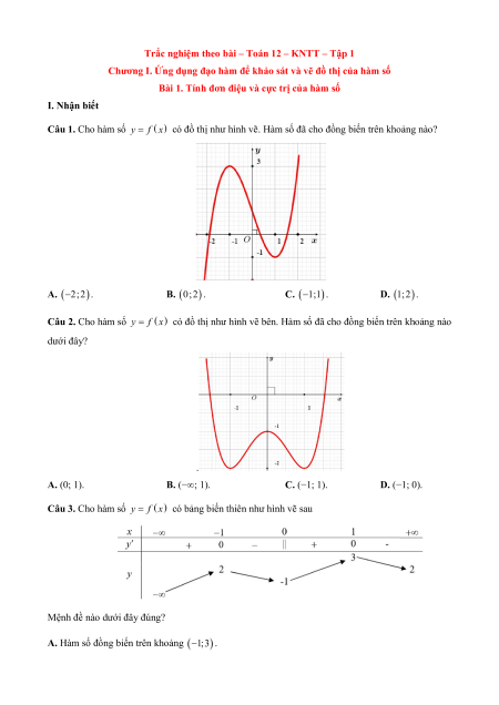 Trắc nghiệm theo bài – Toán 12 – KNTT – Tập 1
