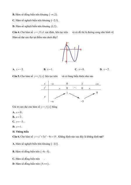 Giá trị cực đại của hàm số y f x bằng A. x 0 . B. x 2 . C. y 3 . D. y 1. II. Thông hiểu Câu 6. Cho hàm số 3 2