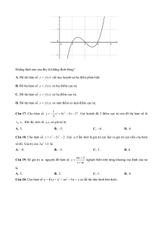 y x 3x 1. D. 3 y x . Câu 11. Hàm số 1 2x y có bao nhiêu cực trị? x 2 A. 3. B. 0 . C. 2 . D. 1. Câu 12. Hàm số 1 3 2