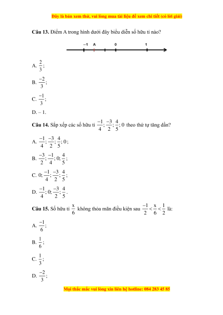 Câu 13. Điểm A trong hình dưới đây biểu diễn số hữu tỉ nào? 2 A. ; 3 −2 B. ; 3 1 − C. ; 3 D. – 1. − −