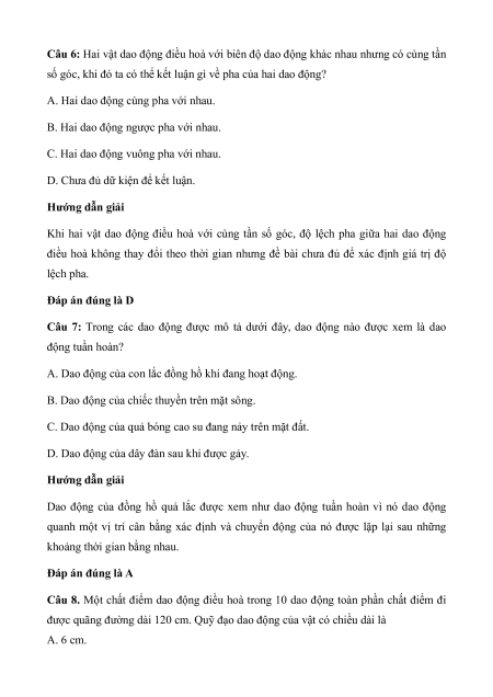 Câu 6: Hai vật dao động điều hoà với biên độ dao động khác nhau nhưng có cùng tần