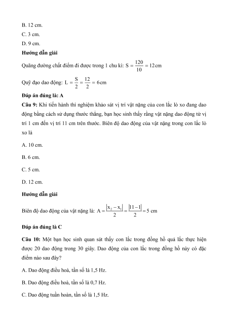 Câu 10: Một bạn học sinh quan sát thấy con lắc trong đồng hồ quả lắc thực hiện