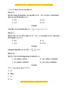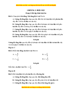 Bài 1: Chọn phát biểu đúng. Nội dung định luật Ôm là: