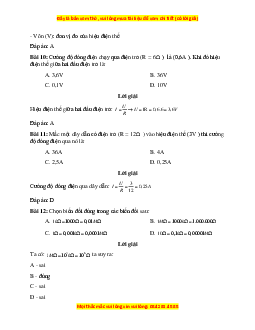 Bài 9: Đơn vị nào dưới dây là đơn vị đo điện trở? A. Ôm (Ω) B. Oát (W) C. Ampe (A) D. Vôn (V) Lời giải Ta có: