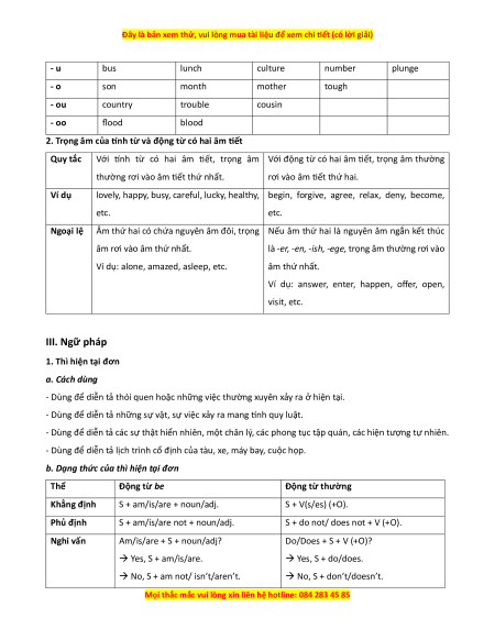 Ví dụ: answer, enter, happen, offer, open, visit, etc. III. Ngữ pháp