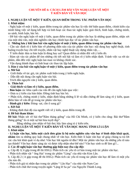 CHUYÊN ĐỀ 6: CÁCH LÀM BÀI VĂN NGHỊ LUẬN VỀ MỘT