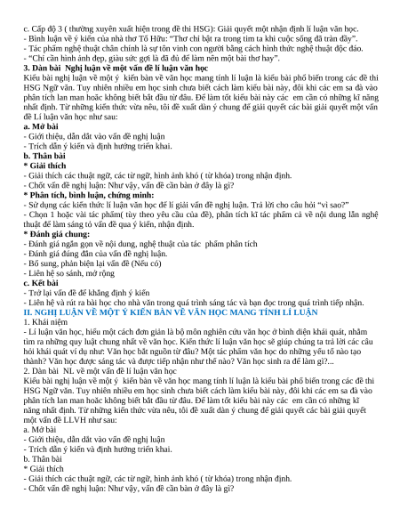 c. Cấp độ 3 ( thường xuyên xuất hiện trong đề thi HSG): Giải quyết một nhận định lí luận văn học.