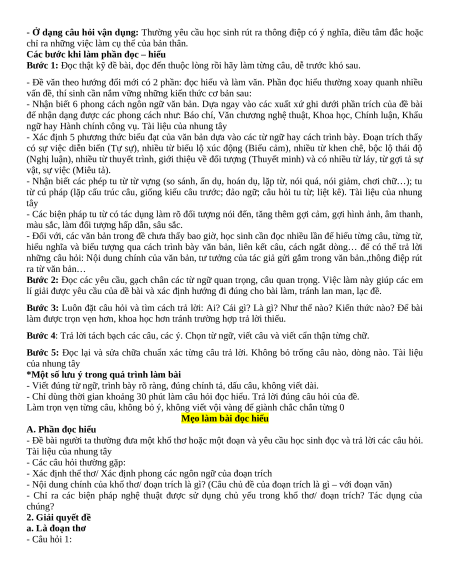 Mẹo làm bài đọc hiểu A. Phần đọc hiểu
