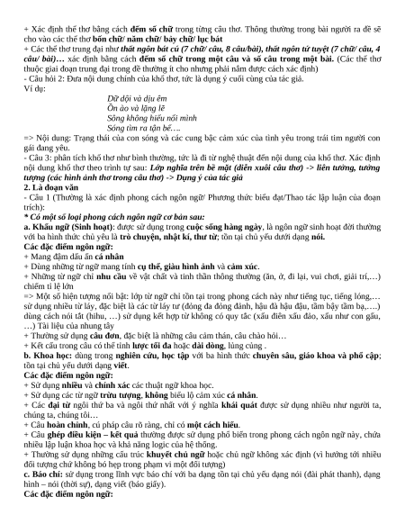 - Xác định thể thơ/ Xác định phong các ngôn ngữ của đoạn trích