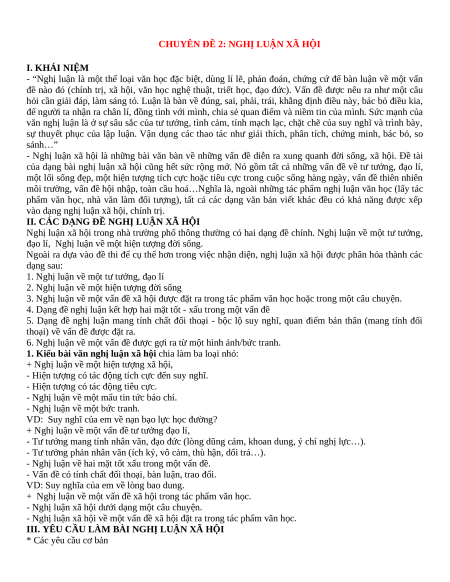 II. CÁC DẠNG ĐỀ NGHỊ LUẬN XÃ HỘI