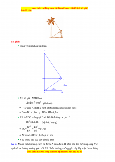 Bài 3: Một người thợ sử dụng thước ngắm có góc vuông để đo chiều cao của một cây