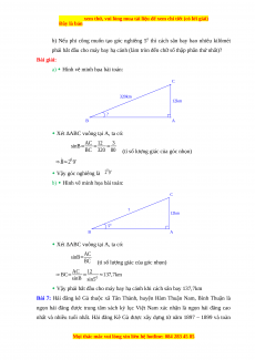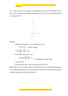 AD = 20m, từ đó ông Việt tính được khoảng cách từ A đến B. Em hãy tính độ dài AB và số đo góc ACB. Bài giải: