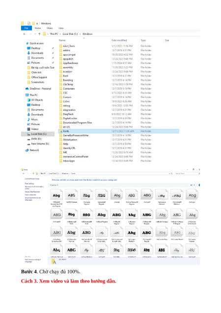 Bước 3. Mở ổ C ⟶ mở folder Window ⟶ mở folder Fonts ⟶ dán font nhỏ lúc
