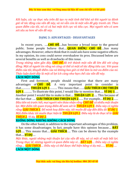 DẠNG 3: ADVANTAGES - DISAVANTAGES