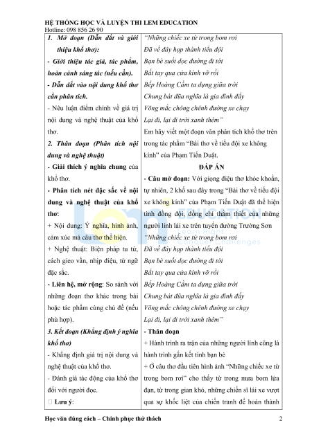 1.2. Cấu trúc bài văn nghị luận một tác phẩm thơ .................................................................... 22