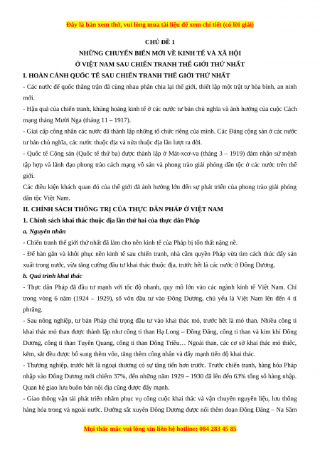 Tóm lại, từ sau Chiến tranh thế giới thứ nhất đến cuối những năm 20 của thế kỉ XX, nước ta đã diễn ra