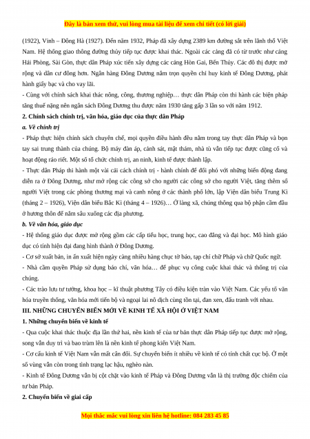 những biến đổi quan trọng về kinh tế, xã hội, văn hóa, giáo dục và giai cấp. Mâu thuẫn trong xã hội Việt