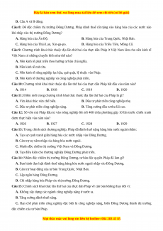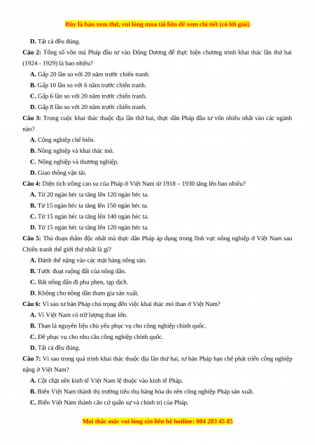 Câu 12: Số vốn mà Pháp đầu tư vào nông nghiệp lên tới 400 triệu phơrăng gấp 10 lần trước chiến tranh