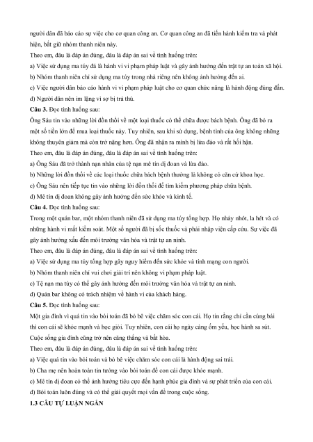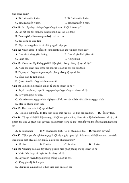 Câu 16: Tệ nạn xã hội là hiện tượng xã hội bao gồm những hành vi sai lệch chuẩn mực xã hội, vi