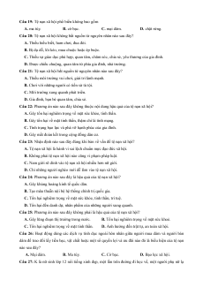 Câu 19: Tệ nạn xã hội phổ biến không bao gồm A. ma túy. B. cờ bạc. C. mại dâm. D. chặt rừng.