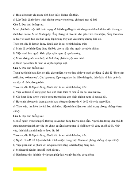 Câu 15: Lan phát hiện anh trai tụ tập đánh bạc. Em nên: A. Giấu đi.