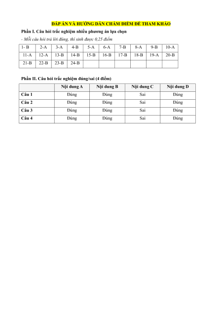 PHẦN II. CÂU TRẮC NGHIỆM ĐÚNG - SAI (4 điểm)