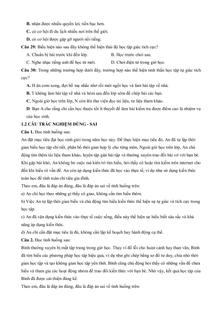 Câu 27: Hành động nào sau đây là biểu hiện của học tập tự giác, tích cực?