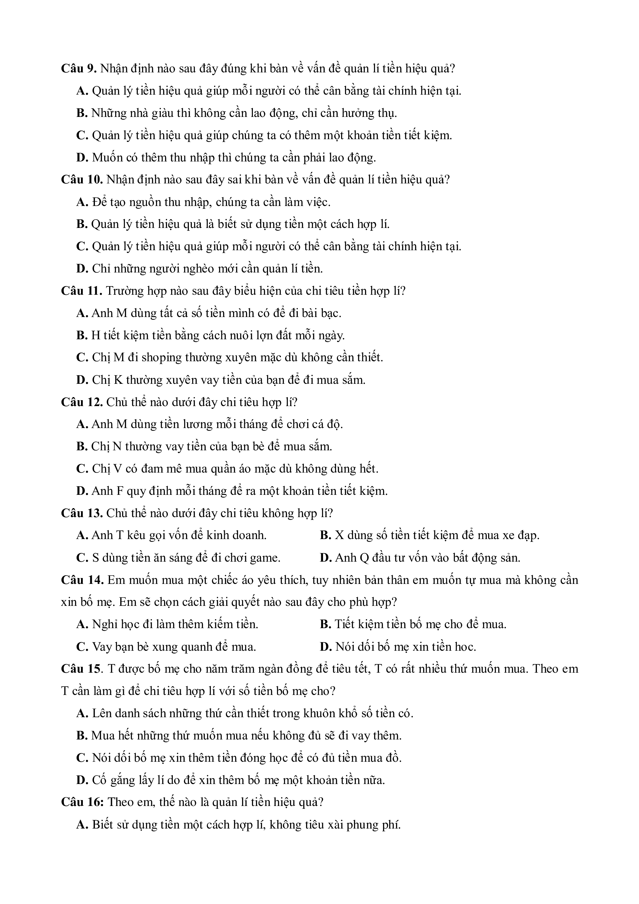 Câu 16: Theo em, thế nào là quản lí tiền hiệu quả?