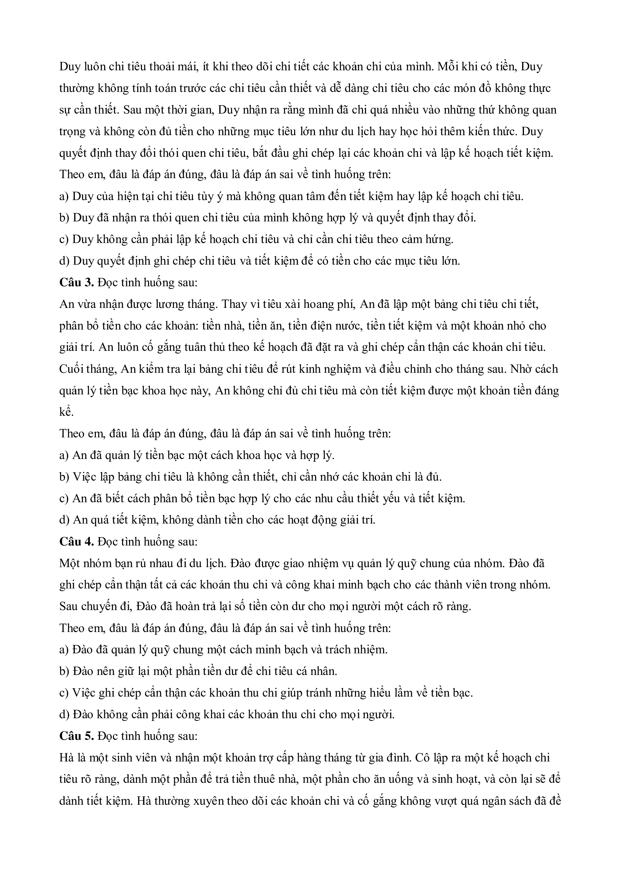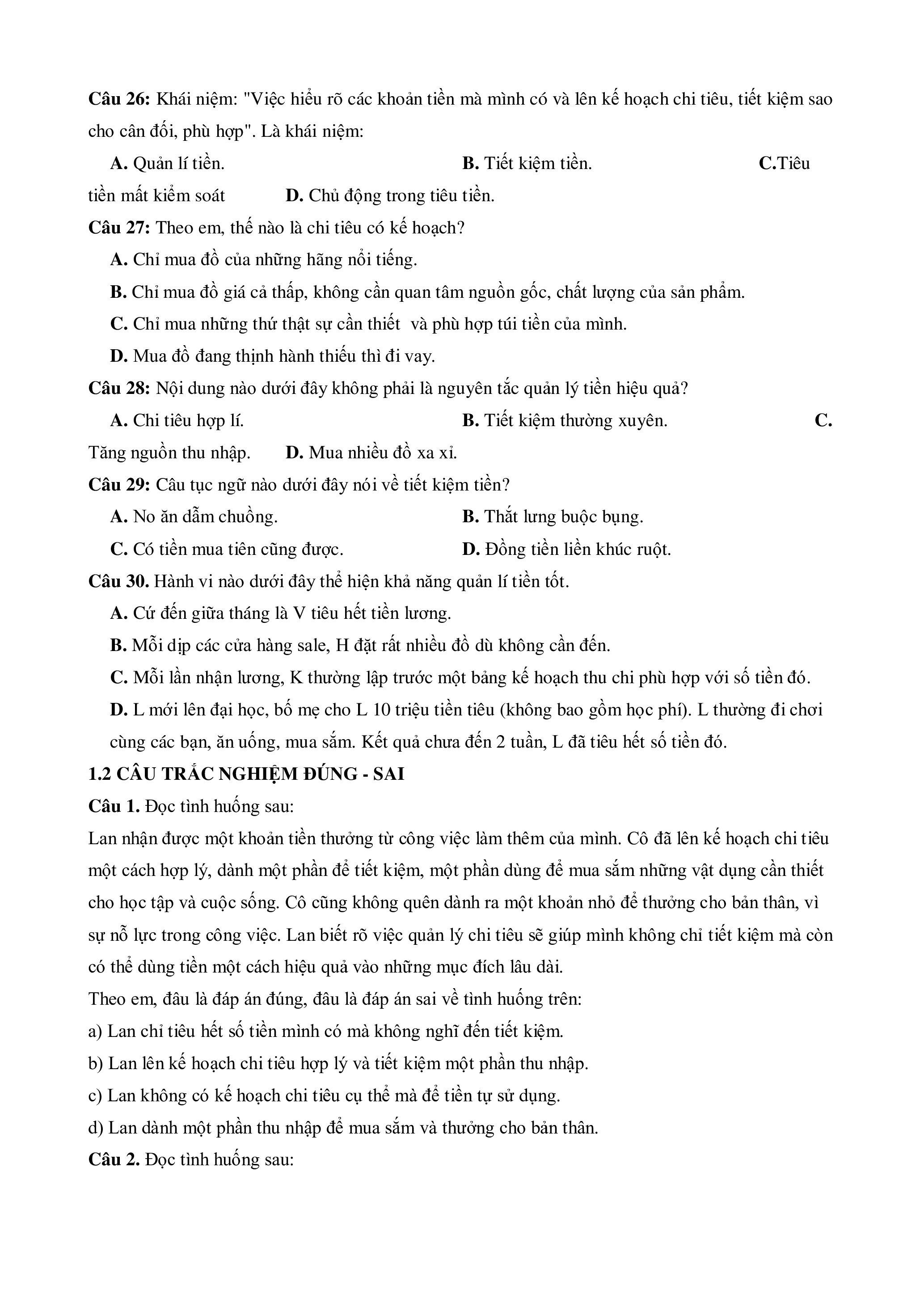 Câu 1. Quản lý tiền hiệu quả là biết sử dụng tiền một cách hợp lí nhằm