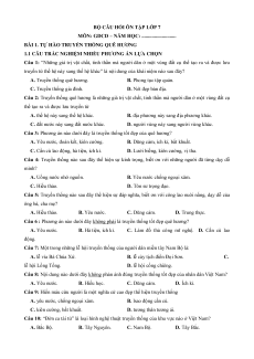Câu 8: Nội dung nào dưới đây không phản ánh đúng truyền thống tốt đẹp của nhân dân Việt Nam? A. Yêu nước. B. Hiếu học. C. Dũng cảm. D. Ích kỉ.
