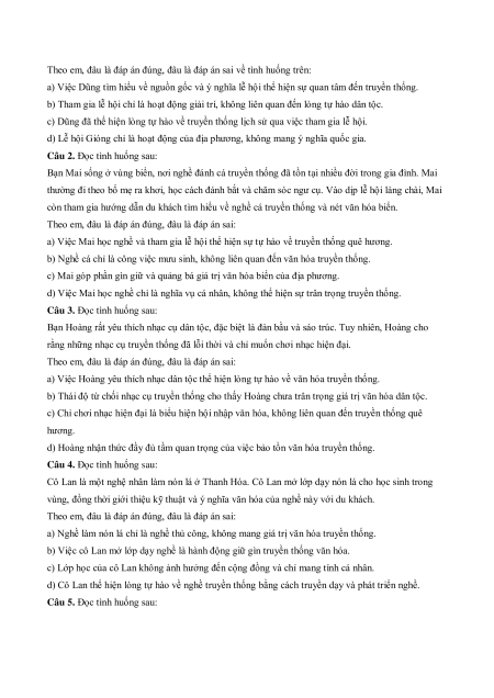 Câu 16: Chúng ta cần tôn trọng sự đa dạng văn hóa vùng miền, vì mỗi địa phương đều