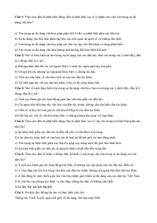 Câu 5: Sự đa dạng của các nền văn hóa trên thế giới thông qua:
