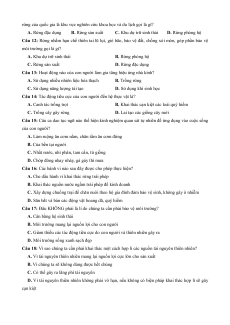 Câu 10: Tài nguyên nào sau đây thuộc dạng không thể phục hồi? A. Đất phì nhiêu B. Nước ngọt C. Khoáng sản D. Sinh vật