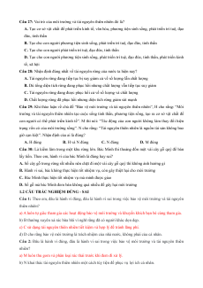 Câu 27: Vai trò của môi trường và tài nguyên thiên nhiên đó là?