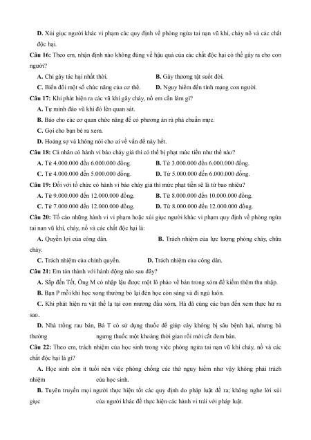 Câu 23: Tai nạn cháy nổ có thể gây ra các thiệt hại về những mặt nào? A. Về tài sản.