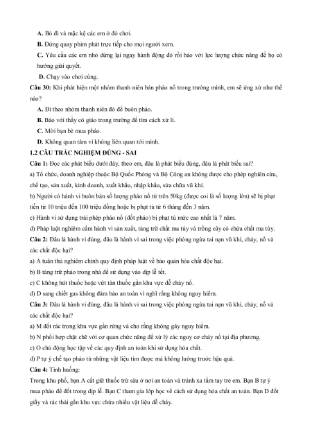 Câu 28: Để có thể phòng ngừa các tai nạn vũ khí, cháy, nổ và các chất độc hại chúng ta cần thực