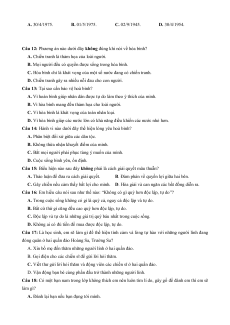 Câu 11: Sự kiện đánh dấu sự chấm dứt chiến tranh Việt Nam là? A. 30/4/1975. B. 01/5/1975. C. 02/9/1945. D. 30/4/1954.