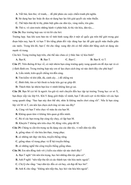 Câu 29. Chúng ta cần tôn trọng sự đa dạng của các dân tộc, vì mỗi dân tộc đều