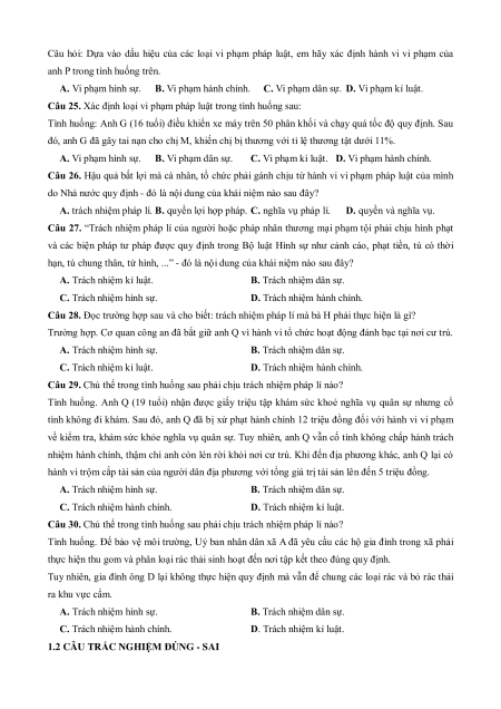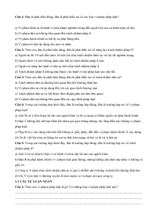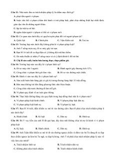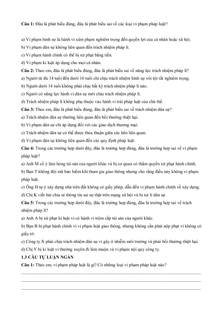 Câu 5: Có bao nhiêu loại vi phạm pháp luật? A. Hai loại B. Ba loại C. Bốn loại D. Năm loại