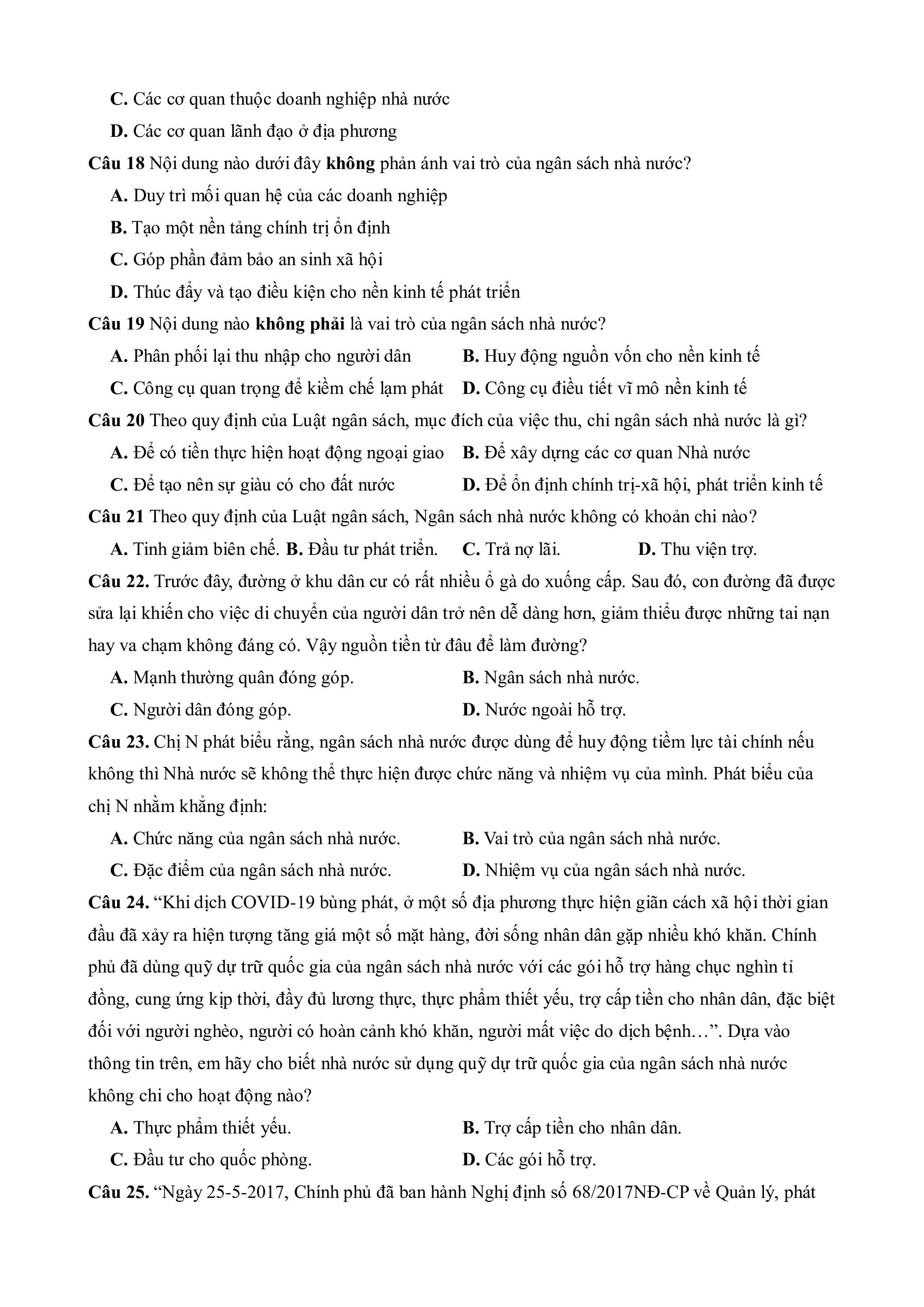 Câu 14 Một trong những vai trò cơ bản của ngân sách nhà nước là góp phần