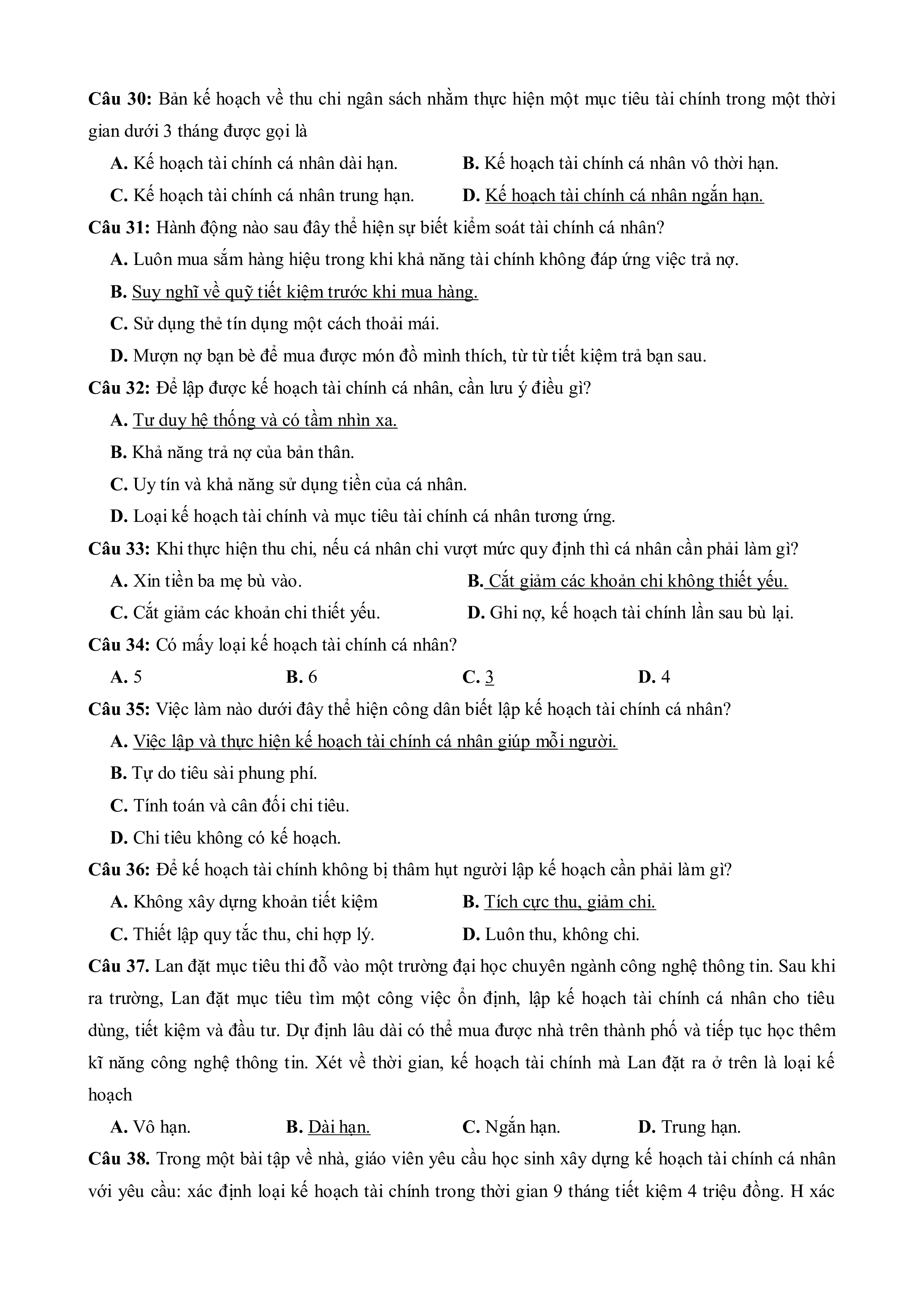 Câu 35: Việc làm nào dưới đây thể hiện công dân biết lập kế hoạch tài chính cá nhân?