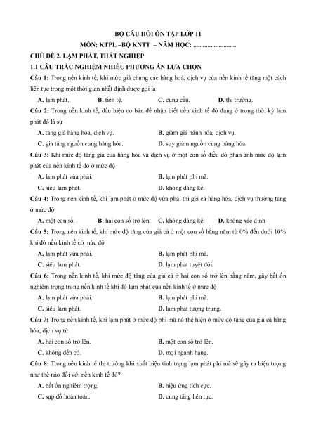 - Tailieugiaovien.com.vn giới thiệu Câu hỏi ôn tập + Đề kiểm tra KTPL 12 theo chủ đề (chung cho ba sách) Chủ đề 2: Lạm phát, thất nghiệp